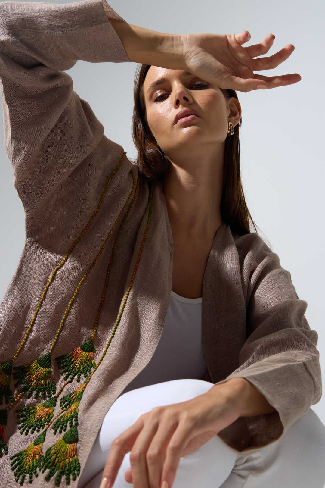 Crafted from Indian sheer Linen with a contrasting chiffon Lining underneath, This Abaya is cut to a flattering A-line silhouette.
